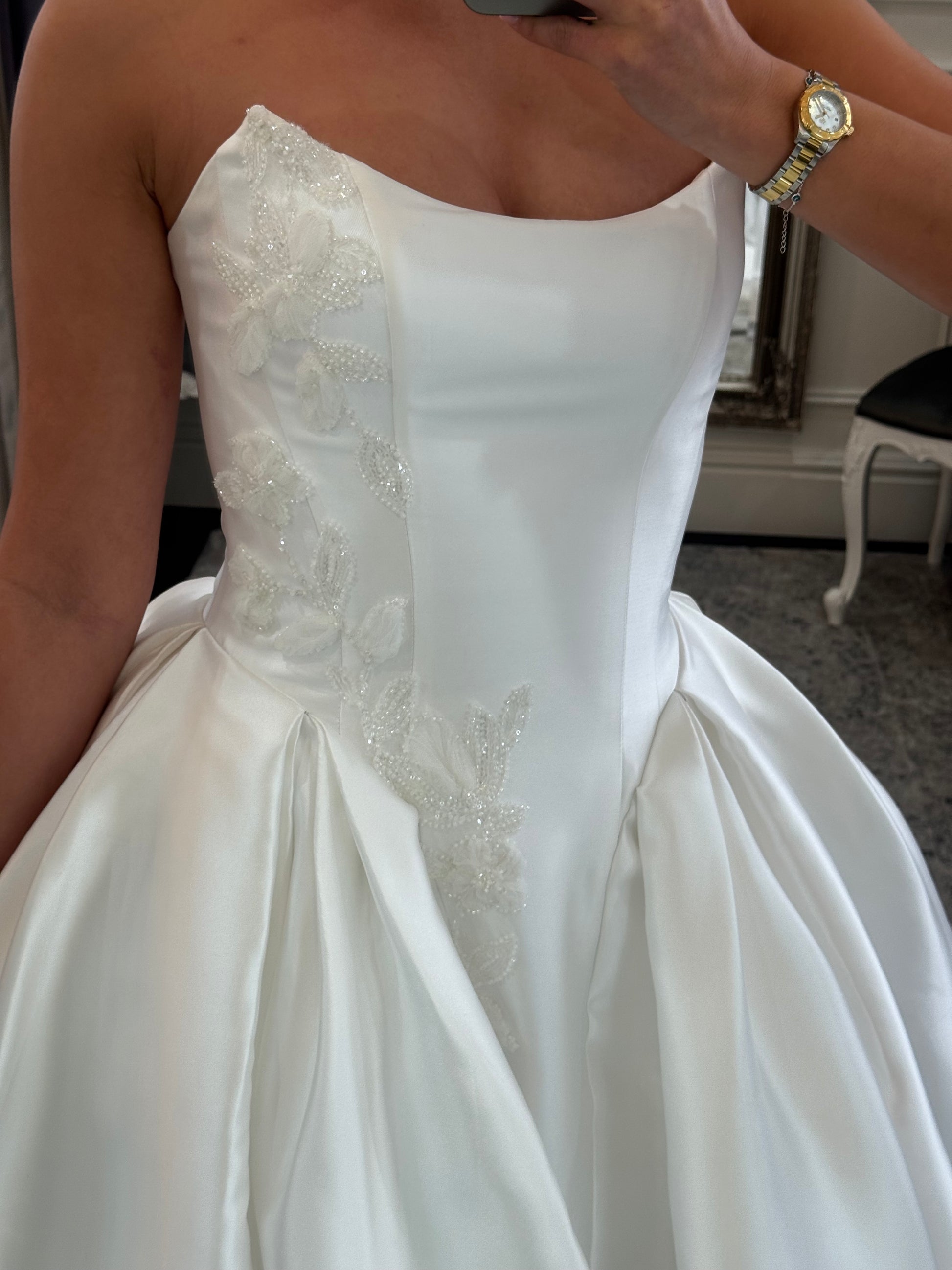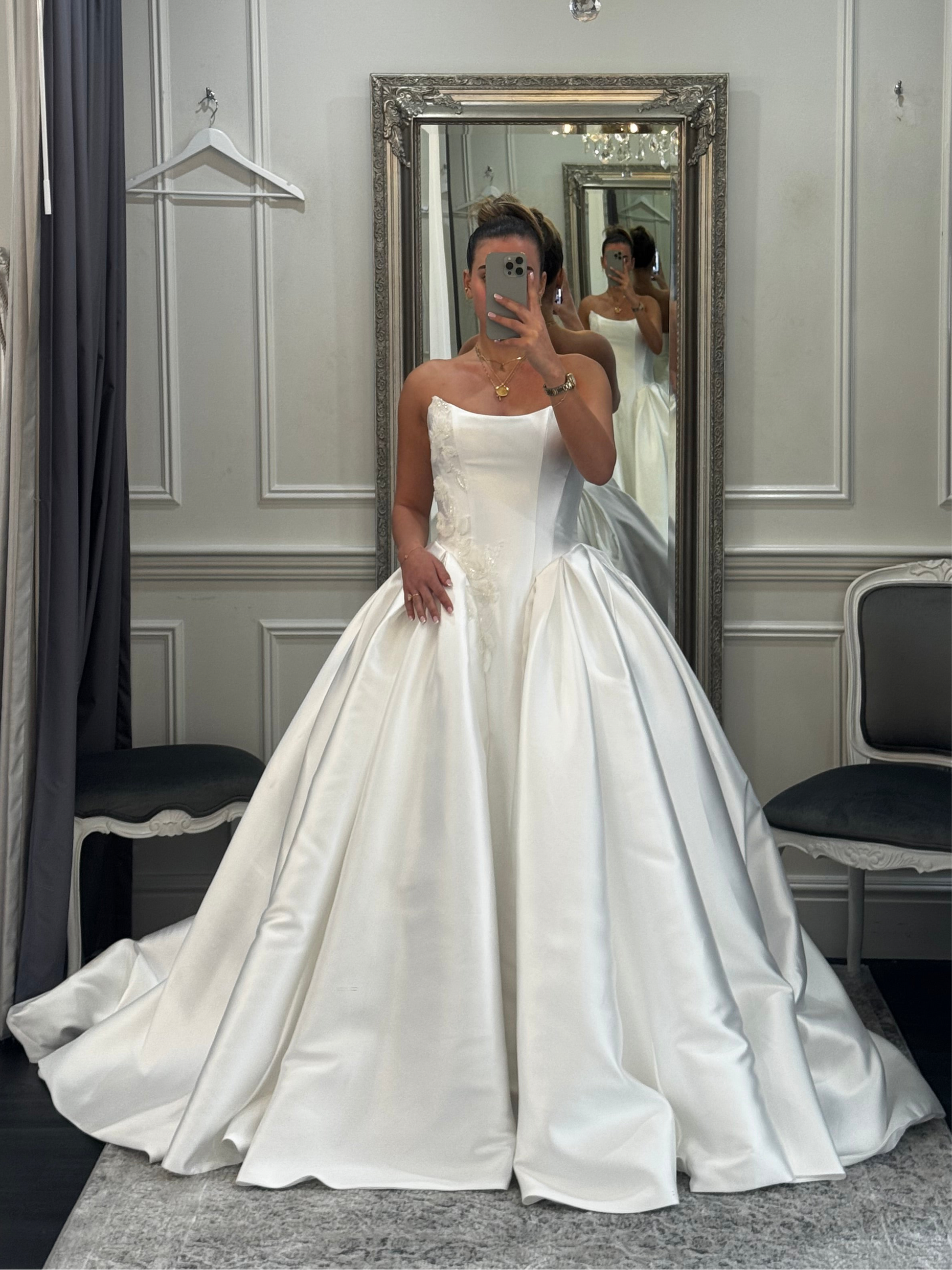 Introducing our new Constance Luxe gown a timeless gown part of our ready-to-wear bridal collection, combining clean structure with delicate embellishment for the modern bride. Crafted from luxurious mikado fabric in a ball gown style.